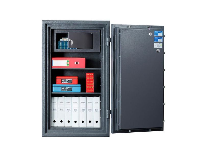 Предназначен для сохранности документов и ценностей при пожаре и взломе. Рекомендованная сумма хранения денег до 6.5 млн. руб. для физических лиц и до 2 млн. руб. для юридических лиц. Устойчивость к взлому по ГОСТ Р 50862-2017: класс 2 (ГОСТ Р).